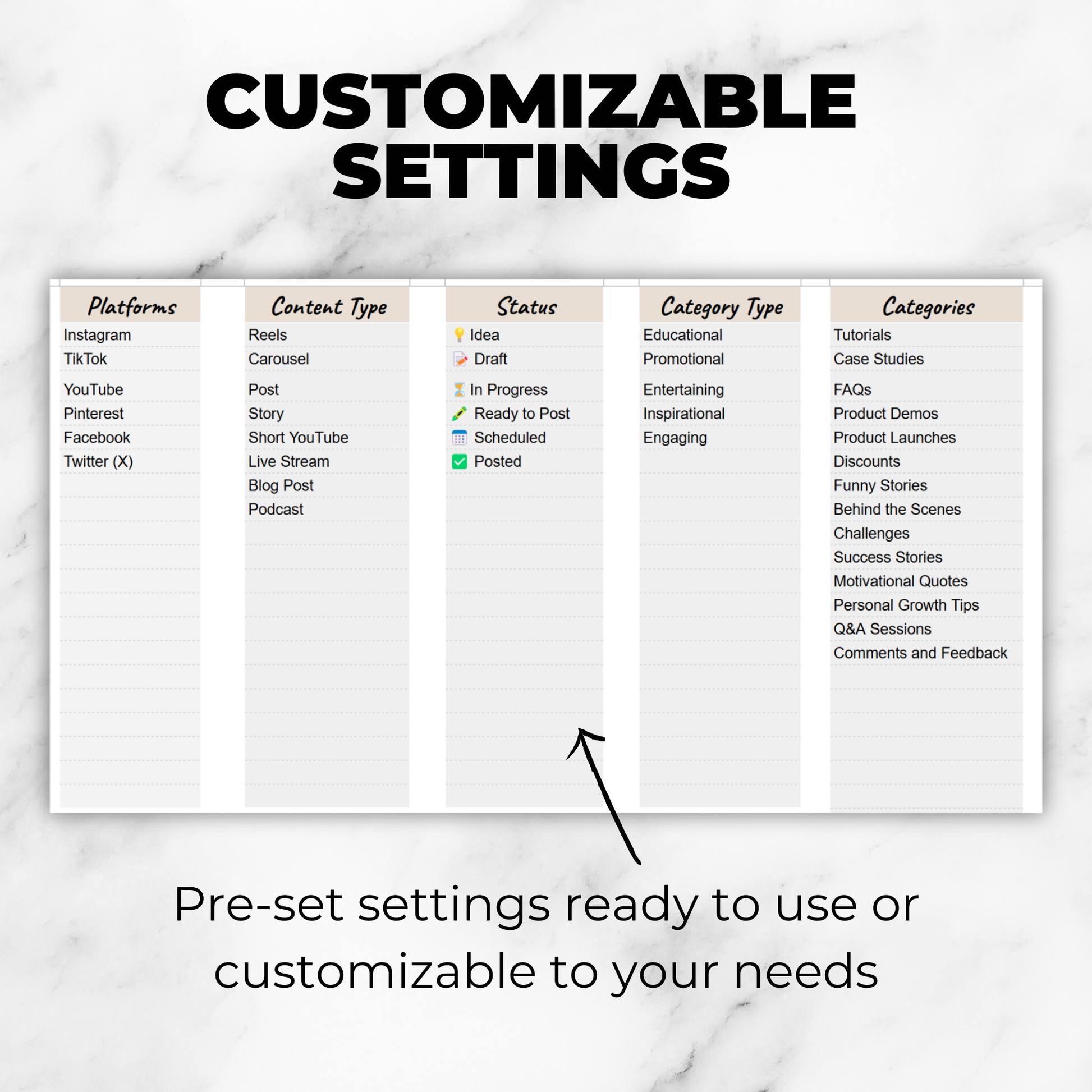 ✔ Professionally Designed Template to plan, track, and preview your content